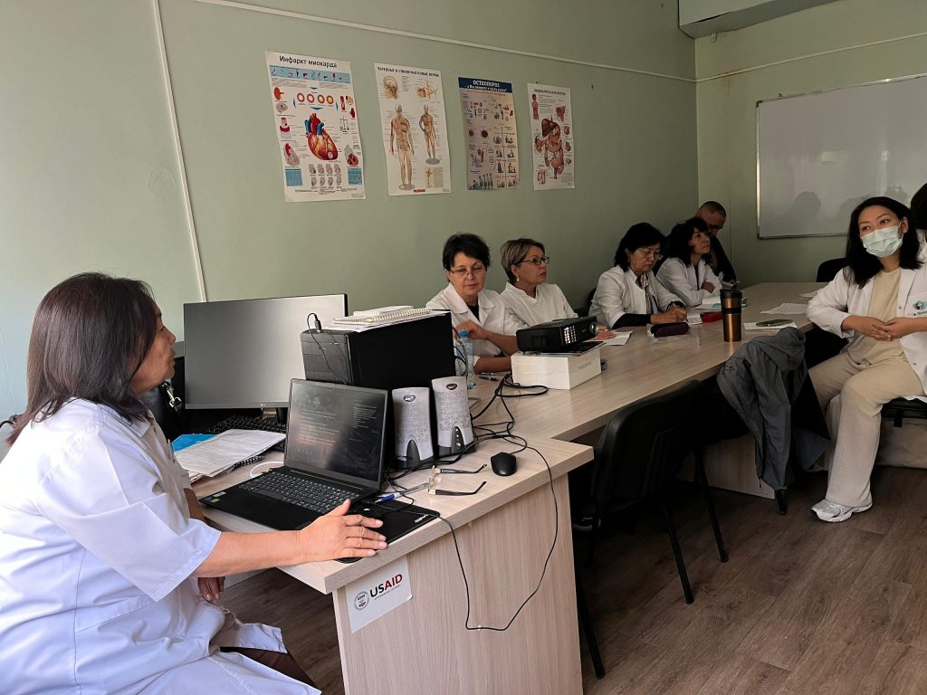 С 15 по 27 сентября 2025 года на кафедре внутренних болезней КГМИПиПК им. С. Б. Даниярова проходит цикл «Пульмонология» для семейных врачей, терапевтов, пульмонологов и функционалистов. Преподаватель кафедры Долотова Токтобубу Джоломановна проводит занятие.