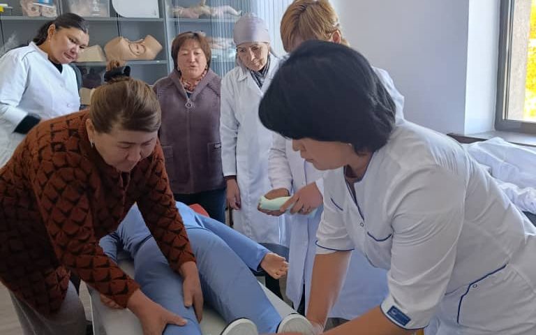 В Иссык-Кульском учебном центре кафедры семейной медицины КГМИПиПК им. С.Б. Даниярова был проведен цикл «Профилактика осложнений и уход за пациентами, перенесшими инсульт». Преподаватель кафедры Жумабаева К.С провела лекционные занятия и отработку практических навыков.